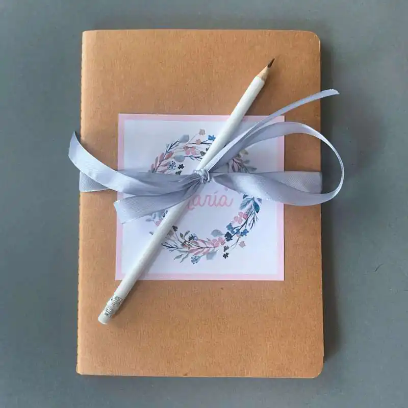 Se puede elegir el cuaderno solo o con un lápiz a juego atado con un lazo.